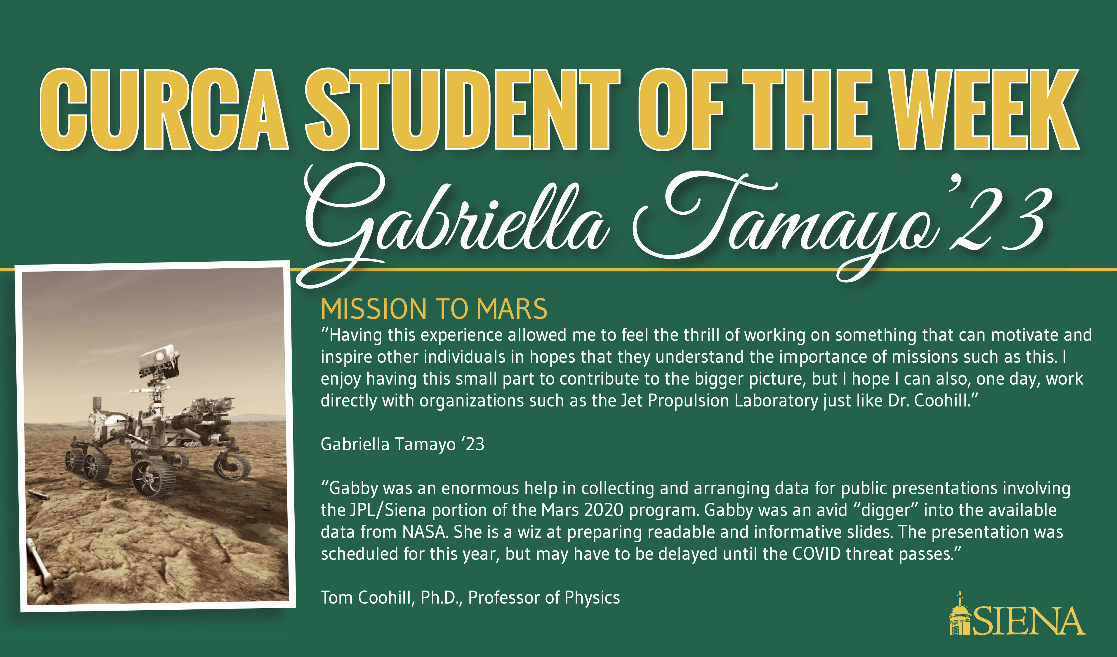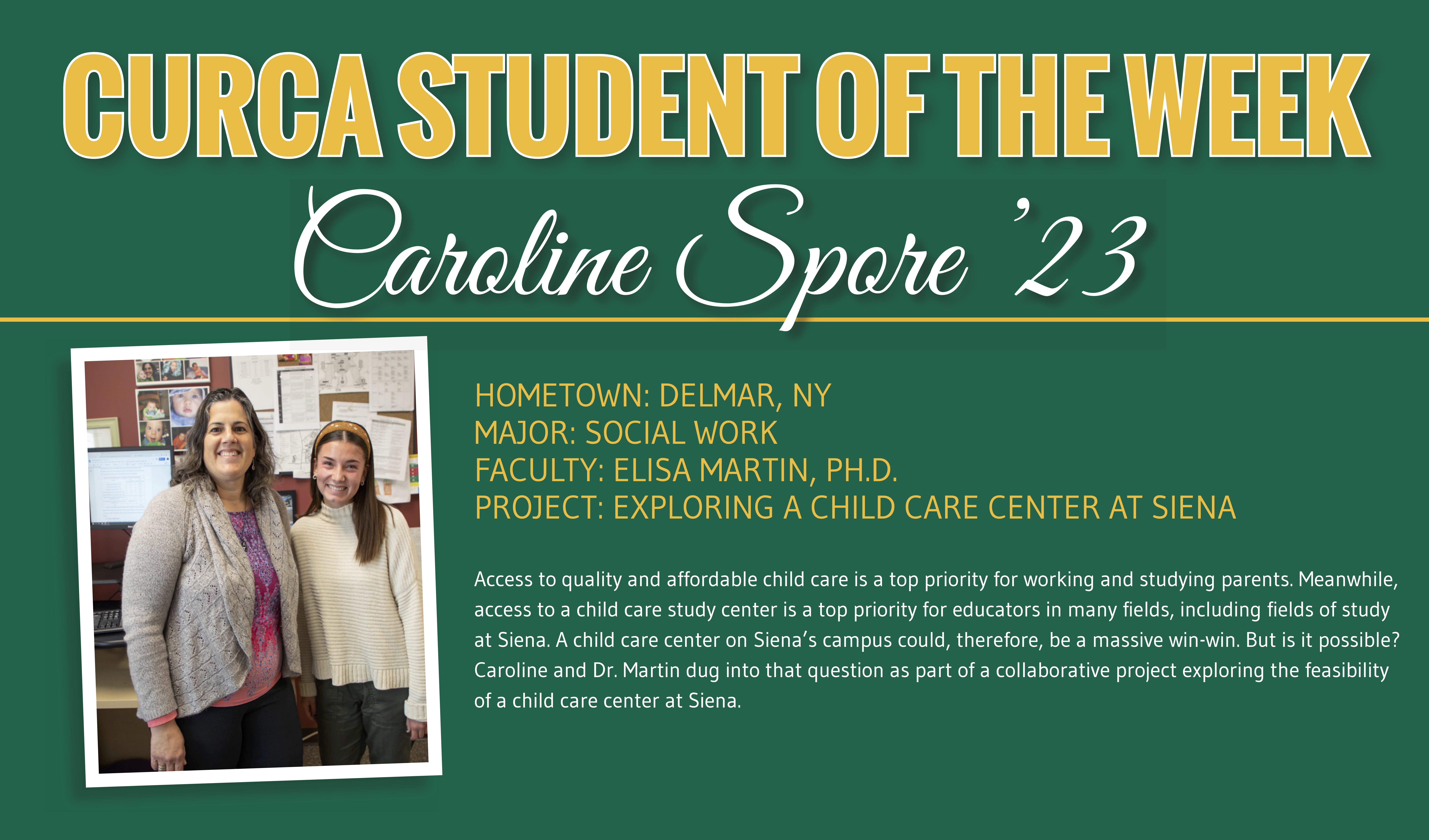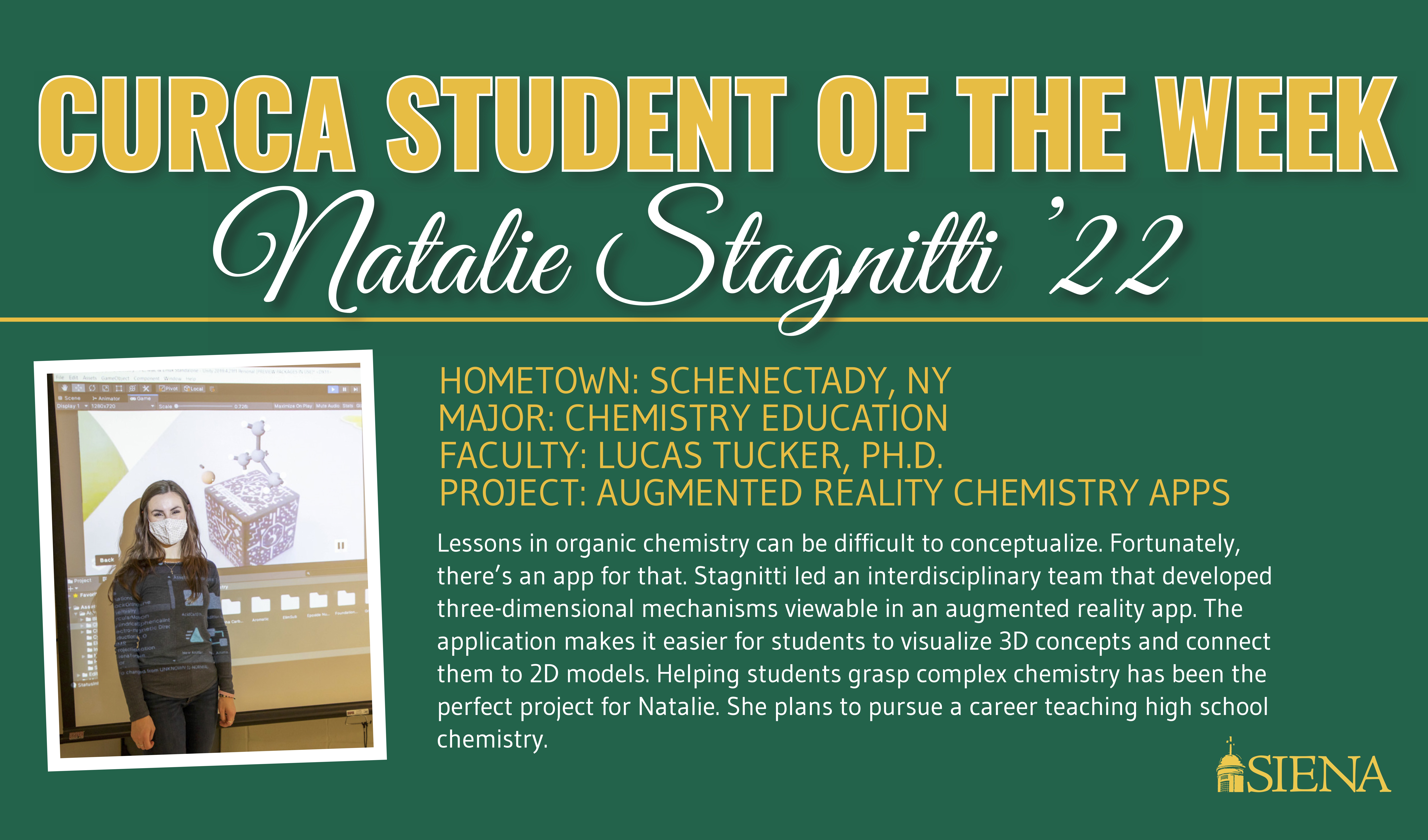 Siena's CURCA Student of the week highlights a new scholar each week, showcasing their unique research.