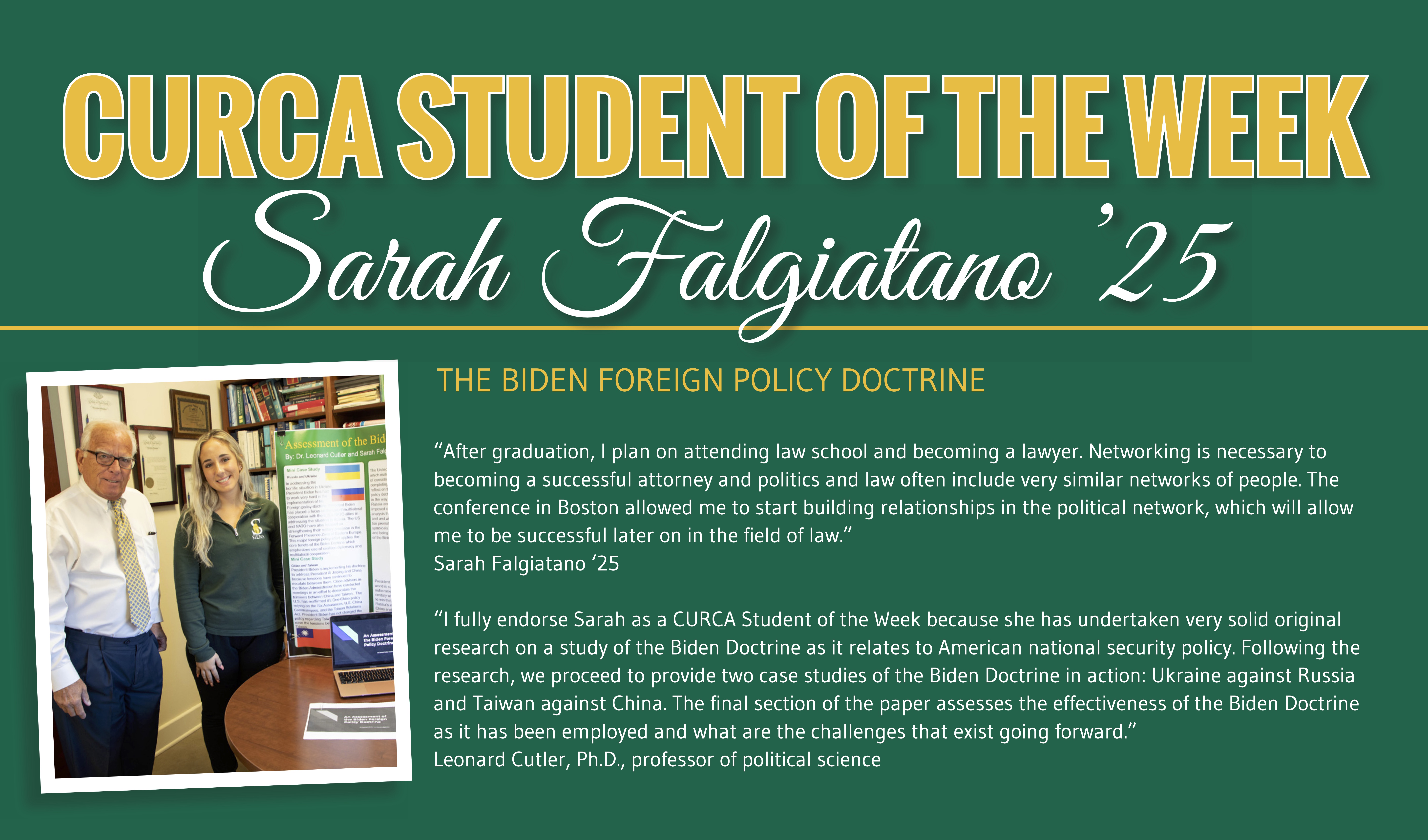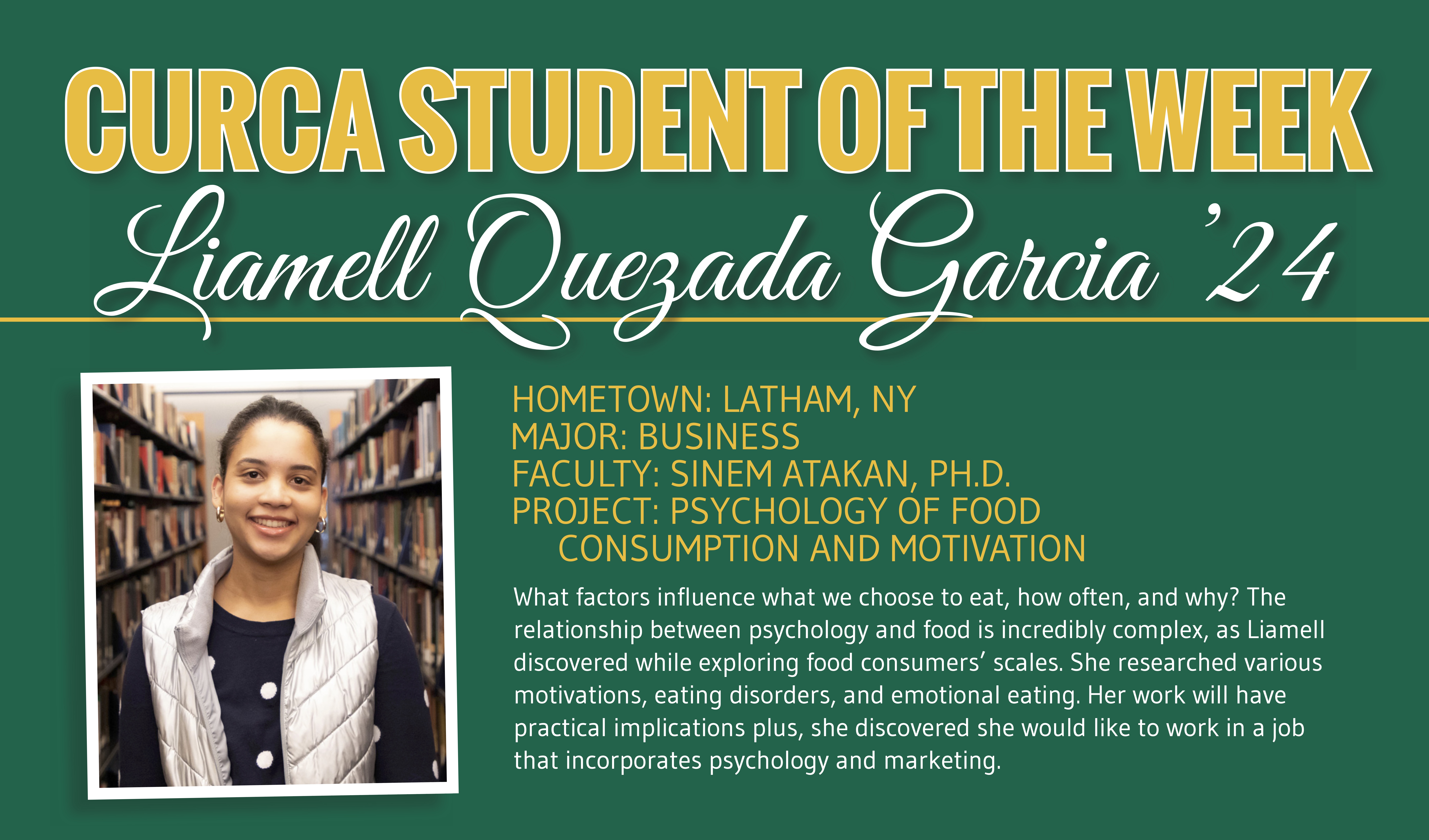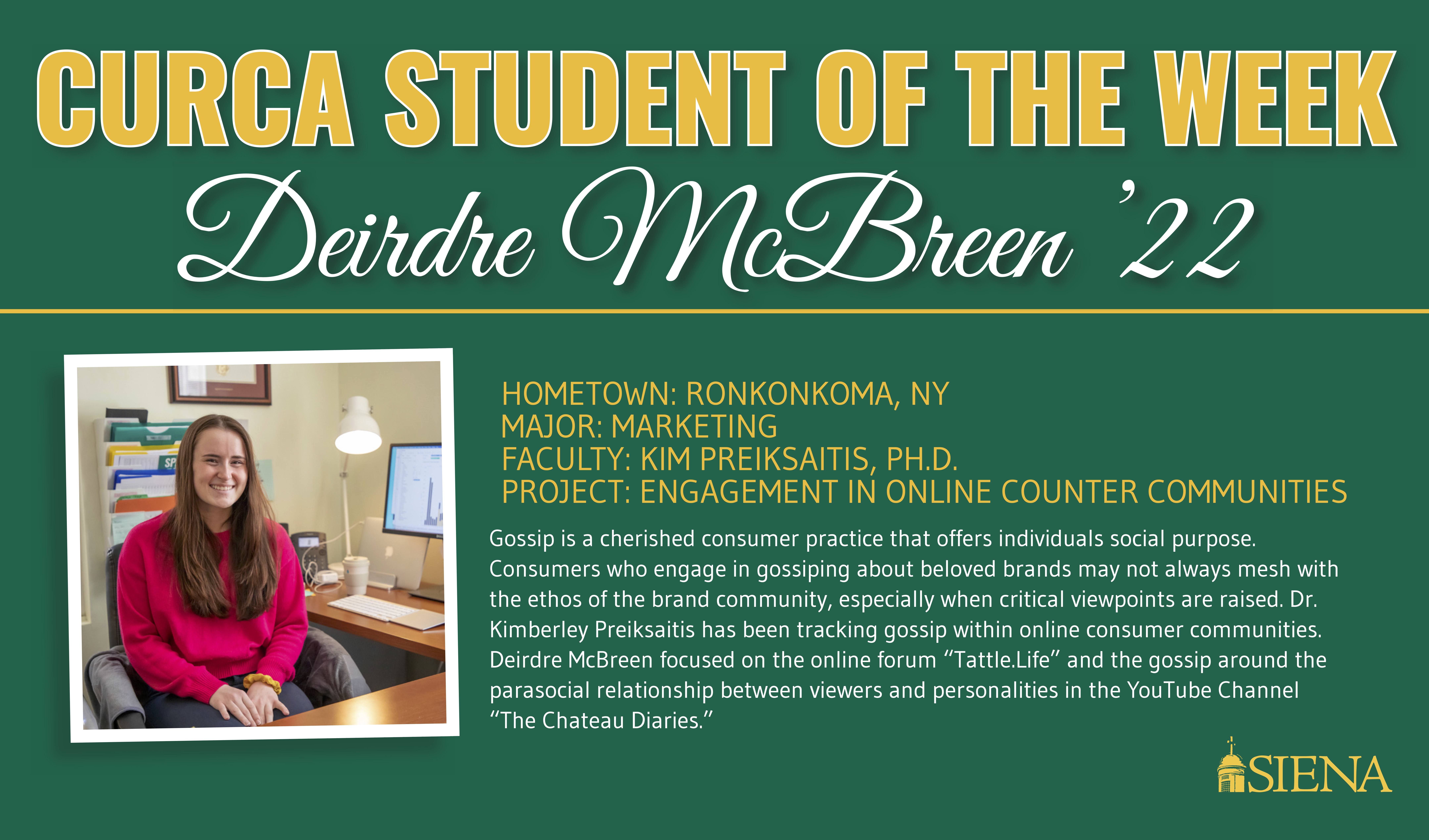 Siena's CURCA Student of the week highlights a new scholar each week, showcasing their unique research.