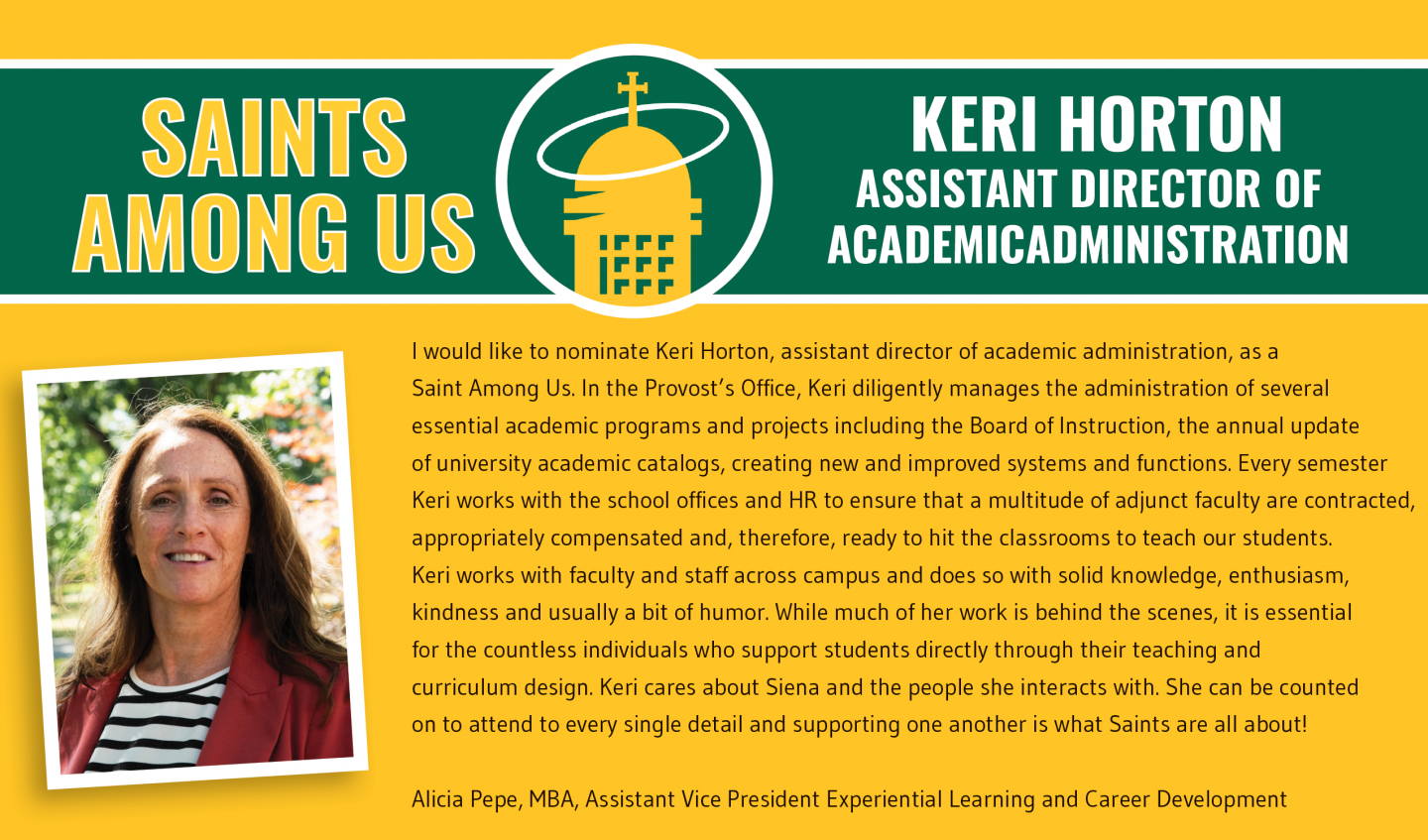 Welcome to COAS! We are a dedicated committee focused on supporting and serving the administrators and staff at Siena. Our goal is to foster a collaborative environment, provide helpful resources, and create opportunities for growth and connection. We work to ensure that the voices of administrators and staff are heard and valued within the Siena community. Together, we strive to enhance the overall experience for those who help make Siena a thriving and vibrant place to work.