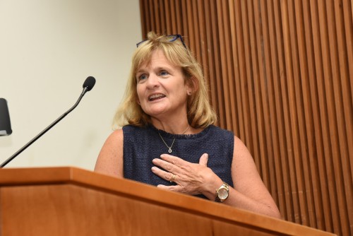 Alumna Bonnie Blanchfield ’81 returned to her alma mater to discuss how her backgrounds in accounting and corporate finance, combined with research skills, have enabled her to experience a highly untraditional career path, yet earn her current status as Senior Scientist in the Center for Clinical Innovation at Brigham and Women’s Hospital.