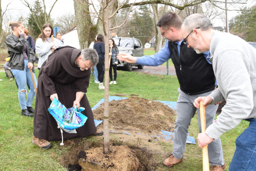 Anxiety about the climate crisis is widespread, especially among younger generations. Being proactive about addressing it can alleviate some of that stress while helping the planet. To that end, students involved in Siena’s Saints Act Together campaign planted a linden tree behind Rosetti Hall on April 12.