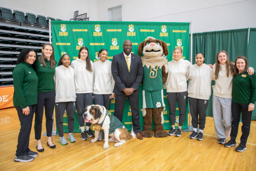 Terry Primm has been promoted to head women's basketball coach. Coach Primm, backed by his student athletes, met the media during an introductory press conference.