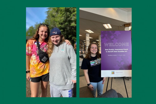 Trinity Hogben '24 remembers the day she met Meg. It was 7th grade gym class. Trinity and her classmates were playing some kind of game on one side of a curtain, and that's when she spotted Meg, by herself except for her aide, on the other side.