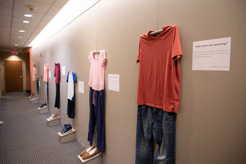 To show that garment choice is unrelated to sexual violence, and to allow people to see themselves reflected in the experience of these survivors and their everyday outfits, Siena’s Title IX Office is presenting the exhibit “What Were You Wearing.”