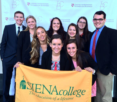 Marketing majors Klaudia Bouyzk '15, Kate Bender '16, Megan Brousseau '15, Brendan Duffy '15, Rebecca Curley '15, Erin Grogan '16, Erin Cardinal '15, Angela Perazone '16 and finance major Eric Beresheim '17 represented Siena College at this year’s conference.