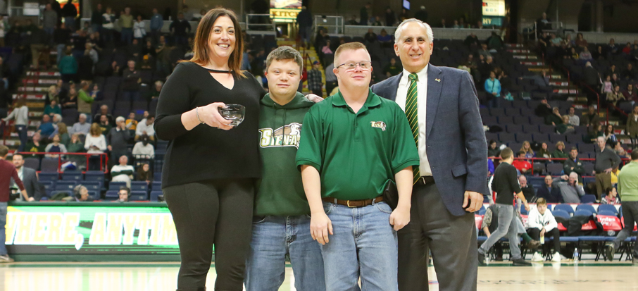 At the halftime of each home basketball game, a person or group from within the Siena community is honored with the Siena College Award for Excellence. This award recognizes its honorees for achievements and service.
