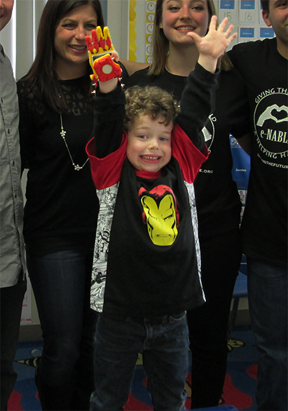 Here’s the background: Jack Carder, 5, was born with a right hand that didn’t fully form. Through Enabling the Future, a global network of volunteers who use 3D printing to create prosthetic hands for people in need, Jack’s mom was introduced to Siena College. One of our graduating physics students, Joey Fairley, had recently launched a local chapter of the organization—and when the request to help Jack came through, Joey and 12 other students got right to work.