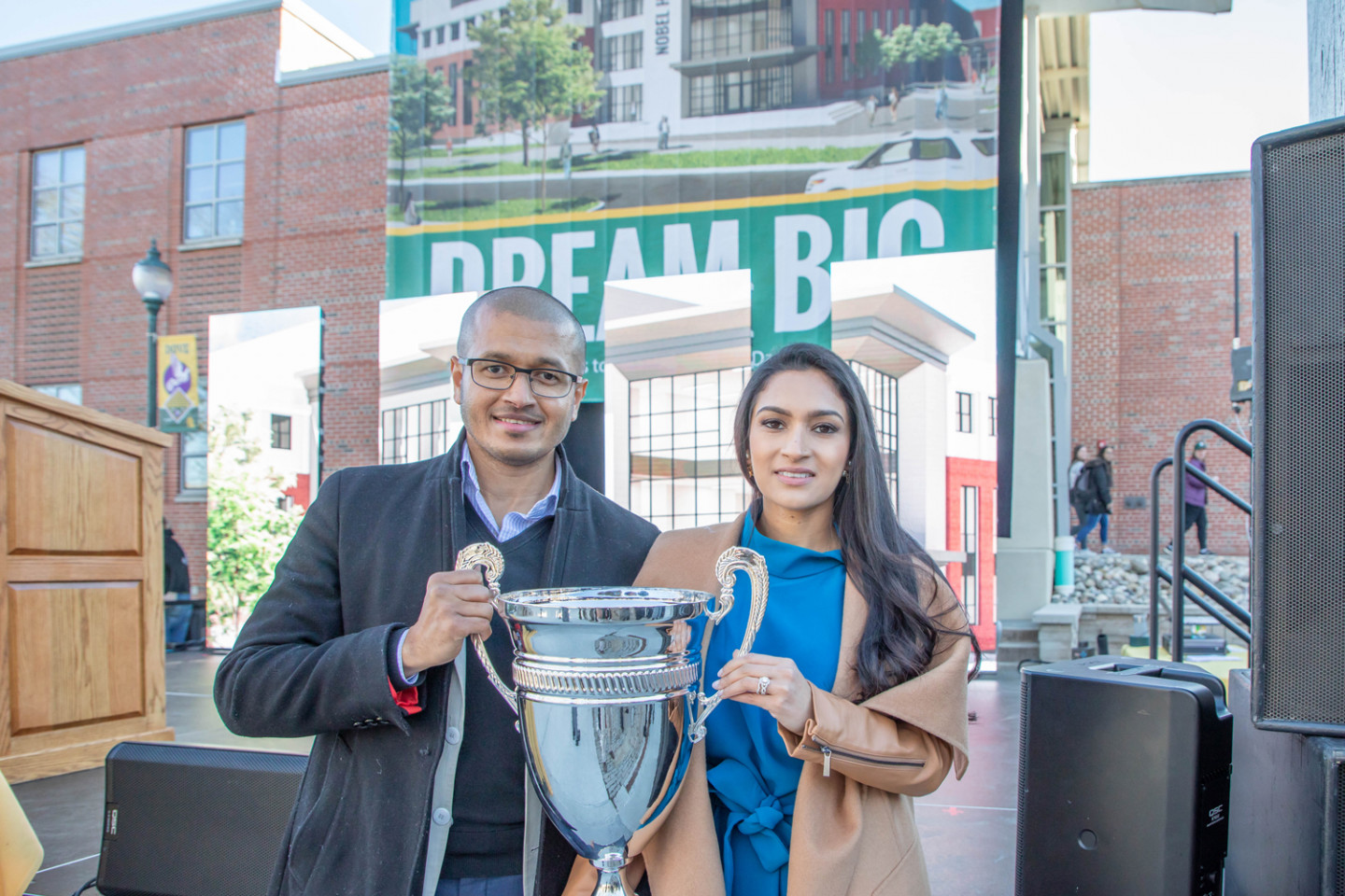 On December 14, the College made a surprise announcement in spectacular fashion during a community event on the Nigro Family Plaza. Das Nobel ’06 and his wife and Siena Trustee, Nipa, will fully fund an expansion of the science center with the addition of Nobel Hall. When completed, their $35 million gift will help transform Siena’s footprint and unleash the College’s full potential in the sciences.