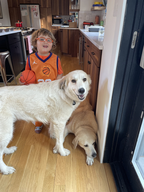 3. Rescuing animals is a tremendous passion of mine. Currently, we have two dogs and a blind cat. All are rescues, one from a kill shelter in New Mexico that I had transported to Boston. Both dogs are Great Pyrenees mixes, and we had two Great Pyrenees before that. At one point, we had four cats and three dogs. I have been known to come across animals in need in the middle of the road (this is how we ended up with our blind cat). I’m convinced the animals find me because they know I will help them.