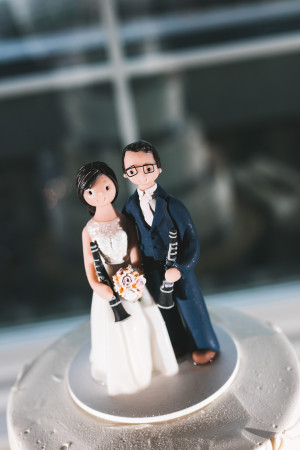 - I actually met my spouse, Matt— a fellow clarinerd— on the first day of college. At first, we saw each other as competition for the coveted clarinet spot in our college orchestra. Luckily, we both got in, and music has been a huge part of our love story ever since. We still perform together whenever we can— whether in our local orchestra here in the Capital Region, at friends’ weddings, or at impromptu hallway concerts in our apartment building during the pandemic. Our wedding was, unsurprisingly, a clarinet-centric affair; our college clarinet teacher played a solo piece during the ceremony that brought the whole room to tears, and our wedding cake topper (pictured below) was extra clarinerd-y.