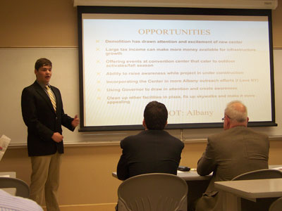 Groups were challenged to determine the best practices of promoting convention center space by examining marketing materials from other U.S. destinations. They partnered with the Albany County Convention and Visitors Bureau, which is set to open a new convention center in downtown Albany next year.