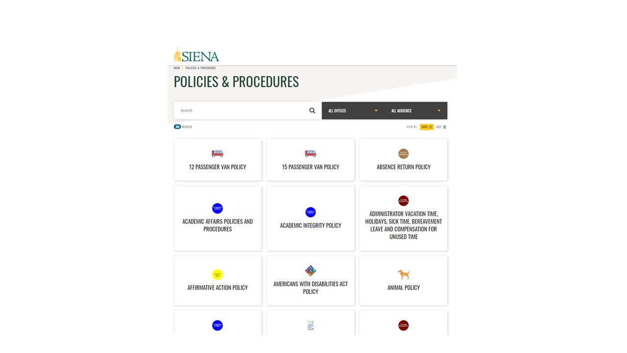 All policies are being collected into one sortable area.   If you have a policy for the website notify Mitzi
