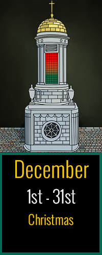 Inside the dome, you'll find a spectacular display of color-changing lights. These lights have been programmed to change to a variety of different hues, each with its own special meaning. These colors have been chosen to reflect different events, seasons, and celebrations taking place on campus. We invite you to come and experience the beauty of the dome for yourself and see what the current color is.